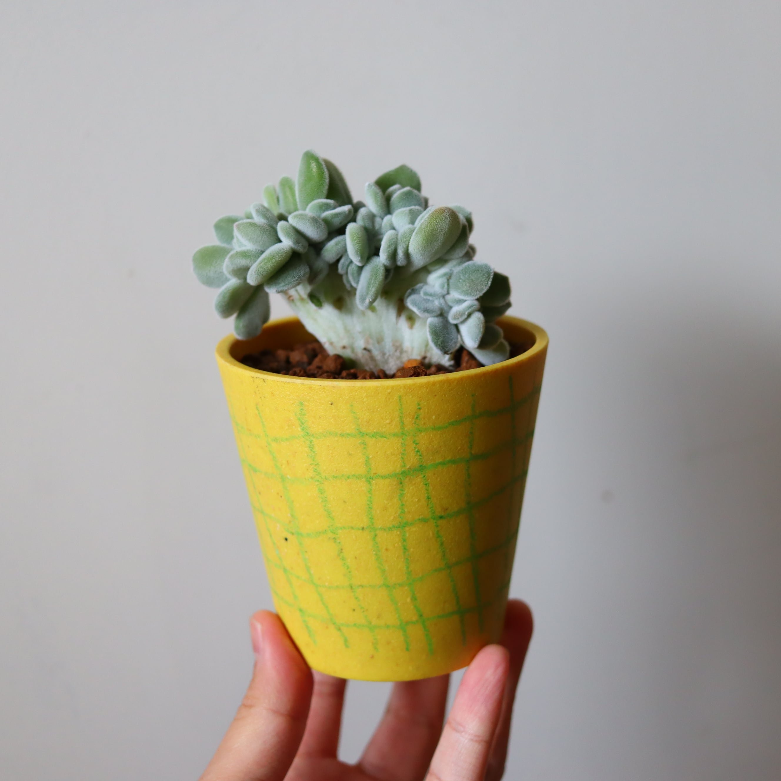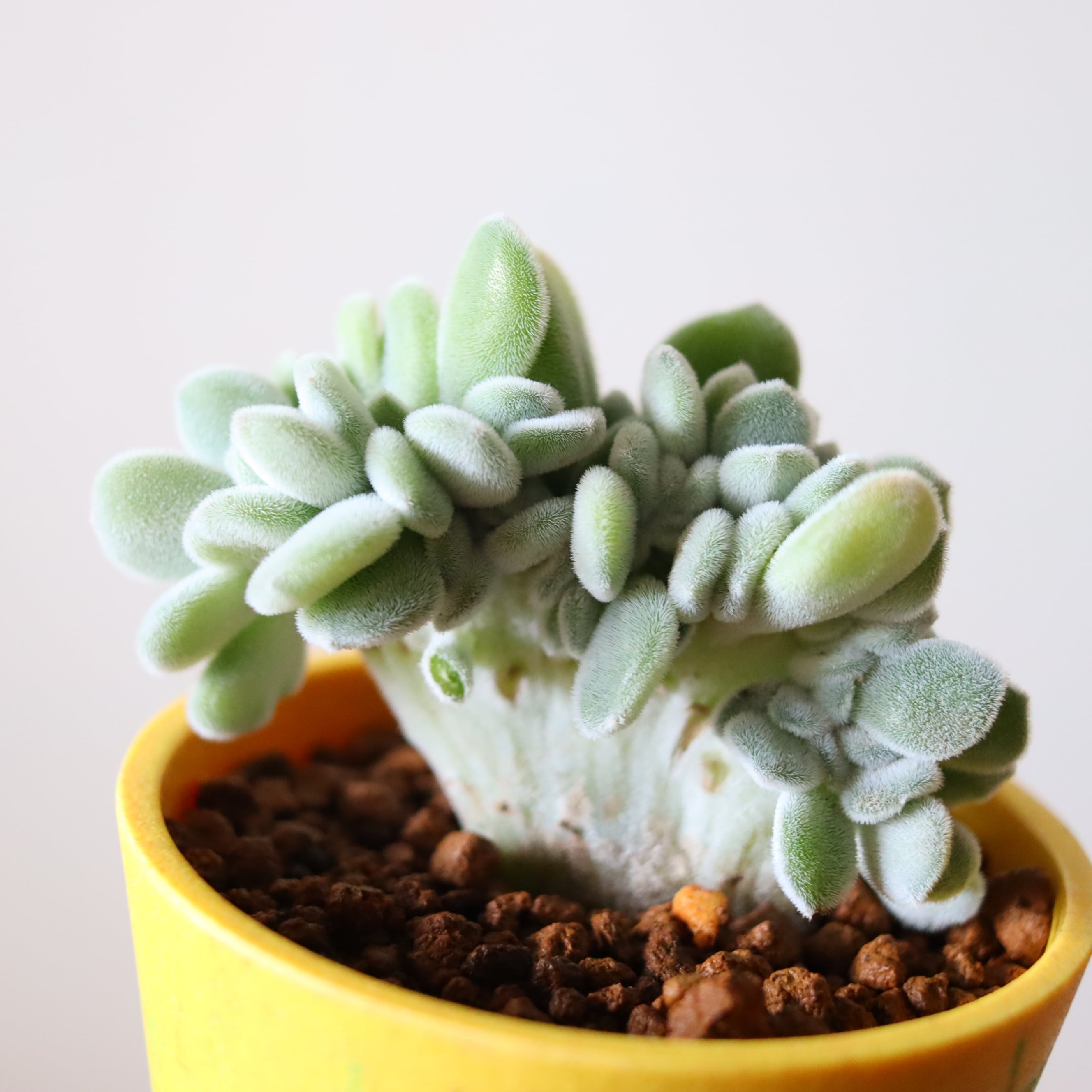 とっても不思議な植物です。本来はバラのような形の多肉植物 エケベリアですが、綴化という変化を起こしこんな姿になっています。もこもこといまにも動き出しそうです。多肉植物なのでお水も頻繁にやる必要がなく、丈夫で育てやすいです。