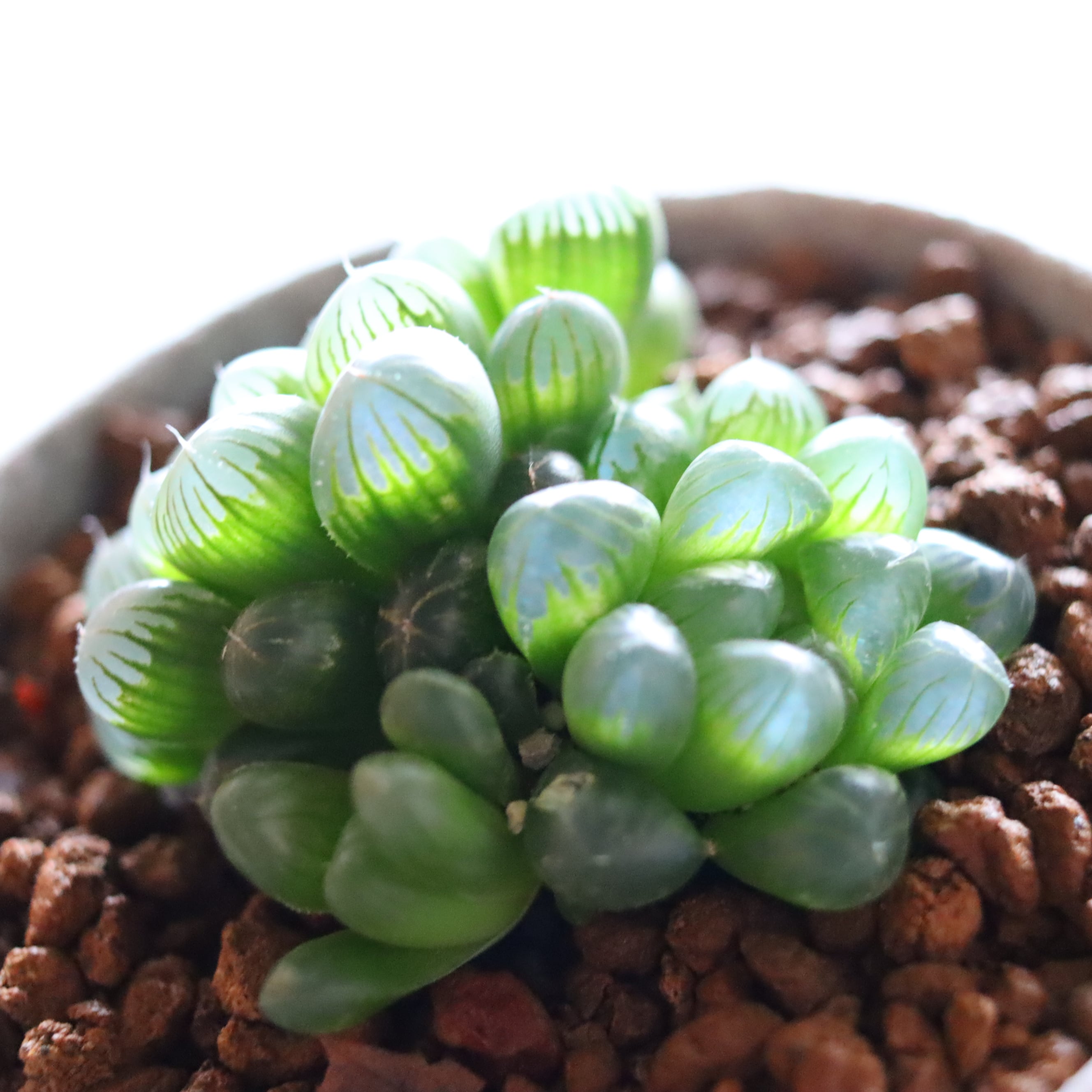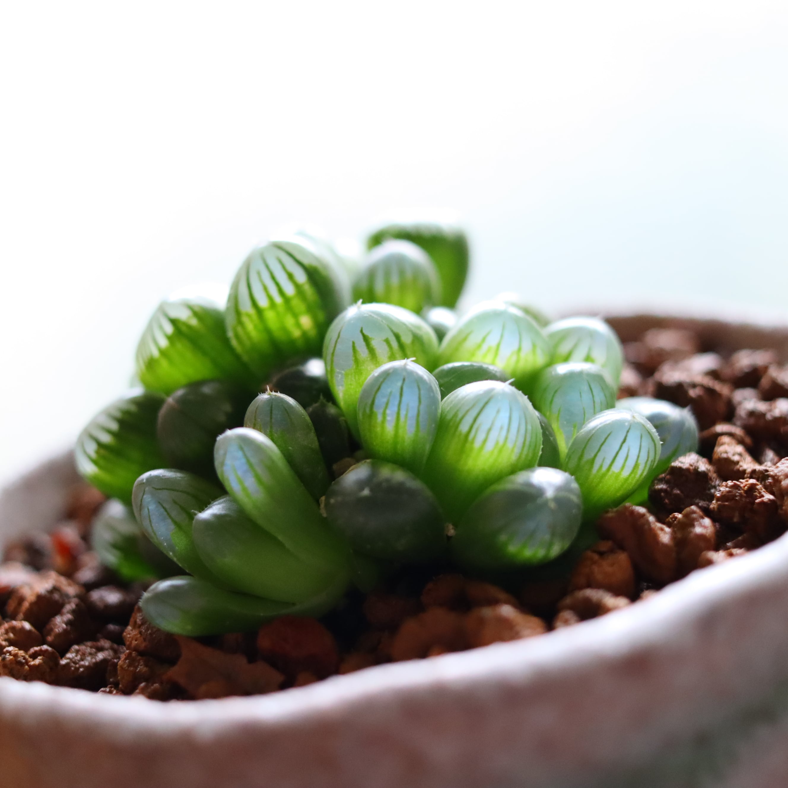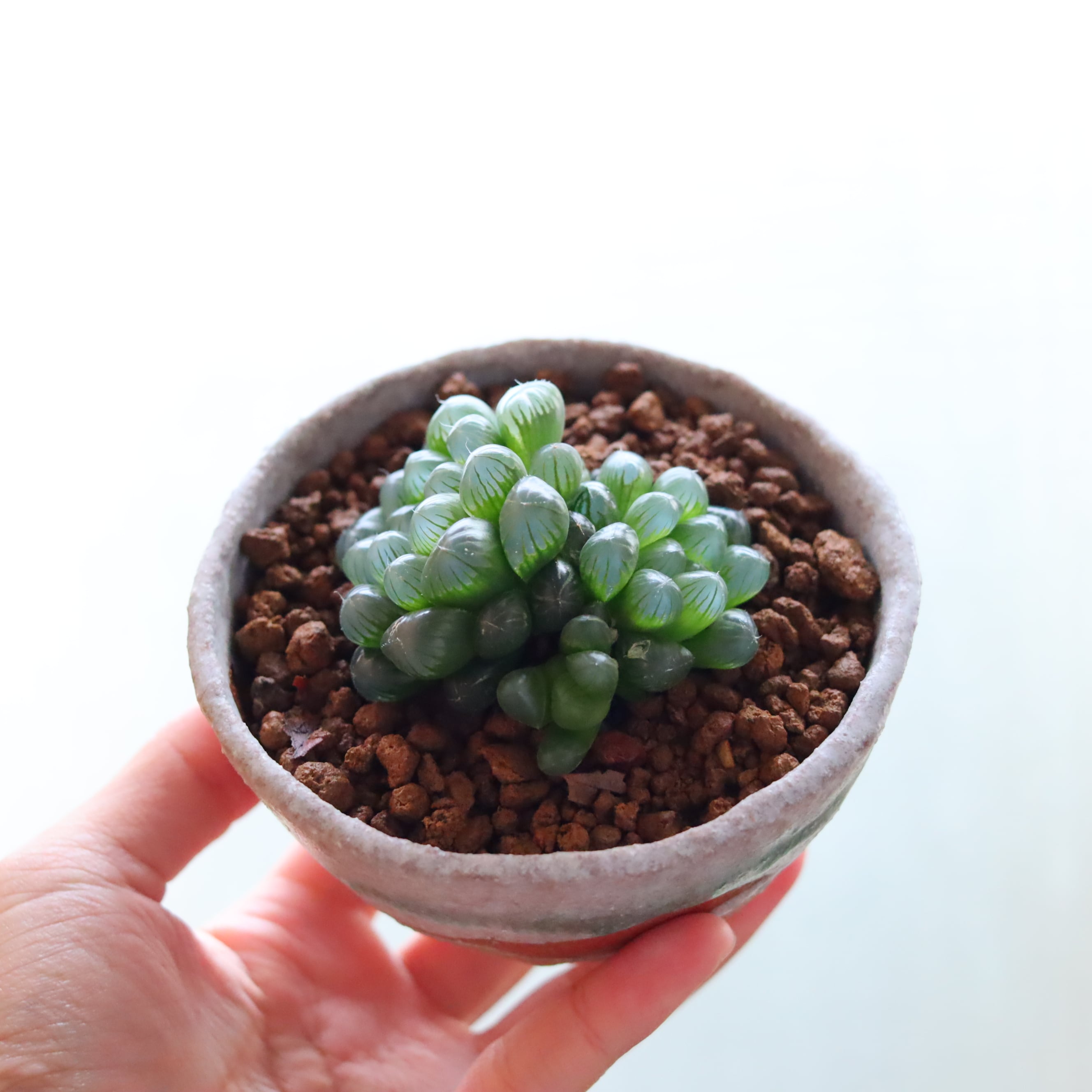 水晶のようでほんとうに綺麗な植物です。自然の光、特に朝日を透かして見ると息を飲むような美しさで、癒されます。サボテンの仲間なので非常に丈夫で育てやすく、お世話が苦手な方にもおすすめです。