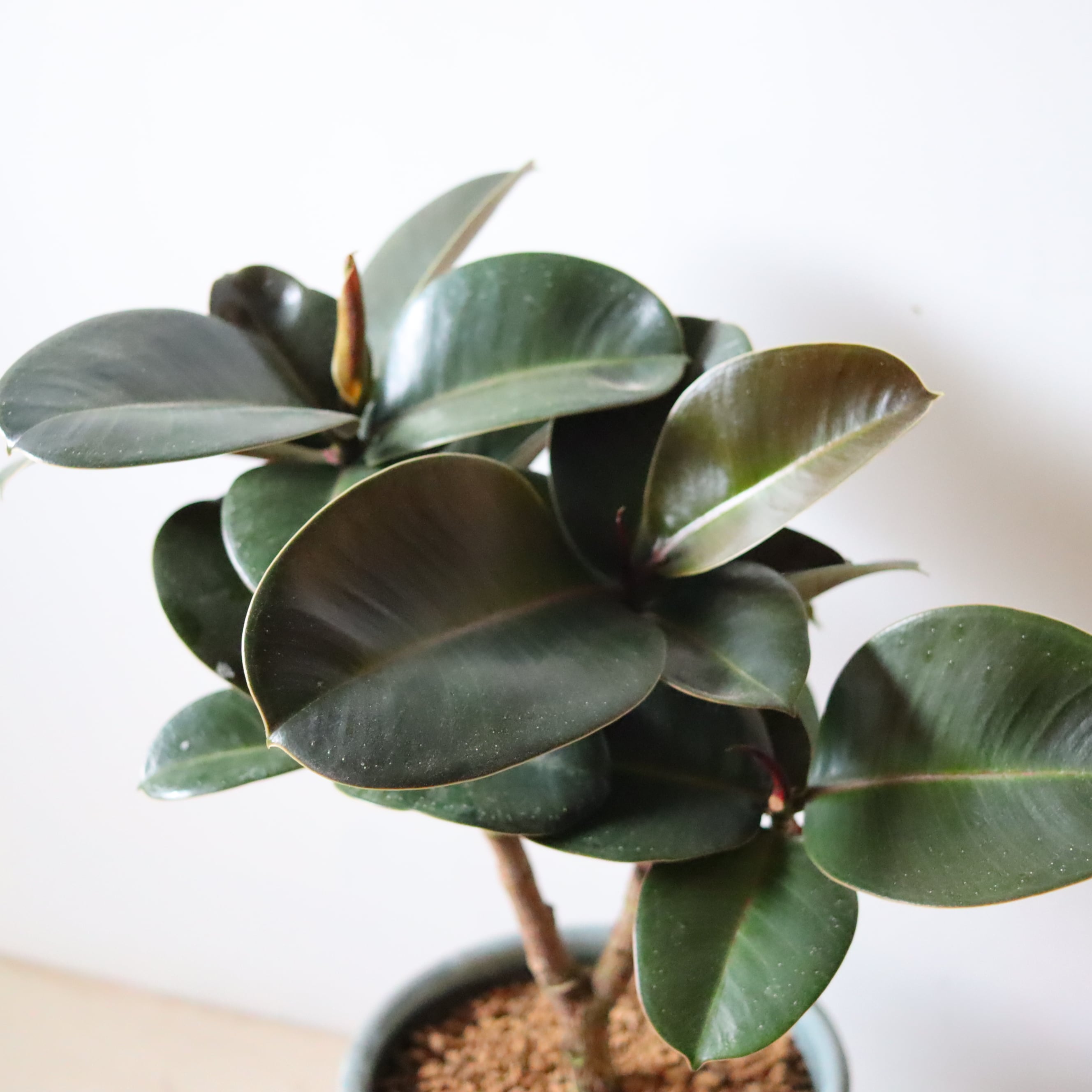 大きな葉っぱにシックな濃いグリーンが可愛らしい、ゴムの木の一種です。落ち着いた雰囲気がいいですね。しっかりとした樹形で雰囲気があり、お部屋のシンボルツリーになってくれます。