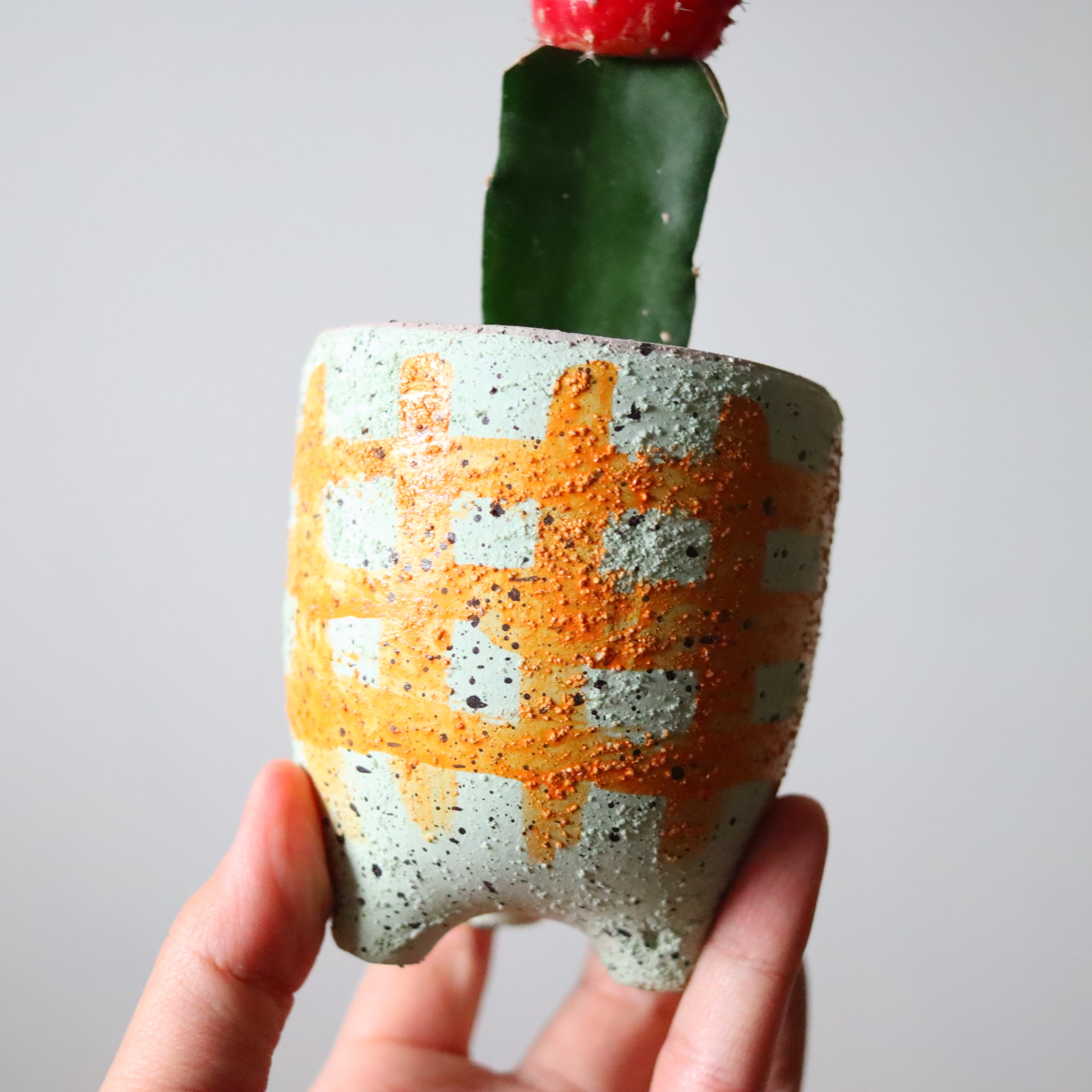 カラフルサボテン、緋牡丹です。カタカナで書くとかわいいですね、ヒボタン。なんだか小さなオブジェっぽくていい感じです。