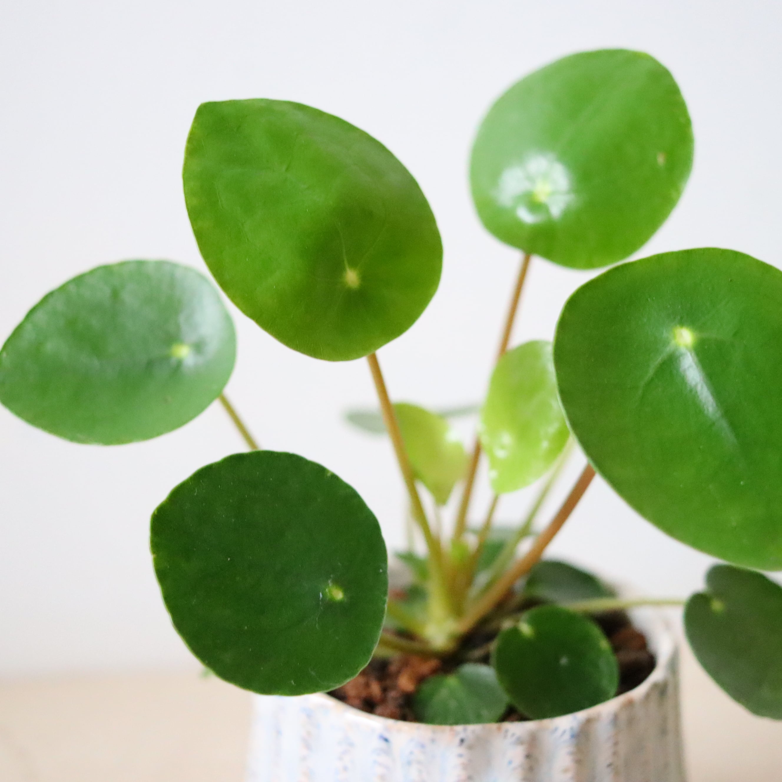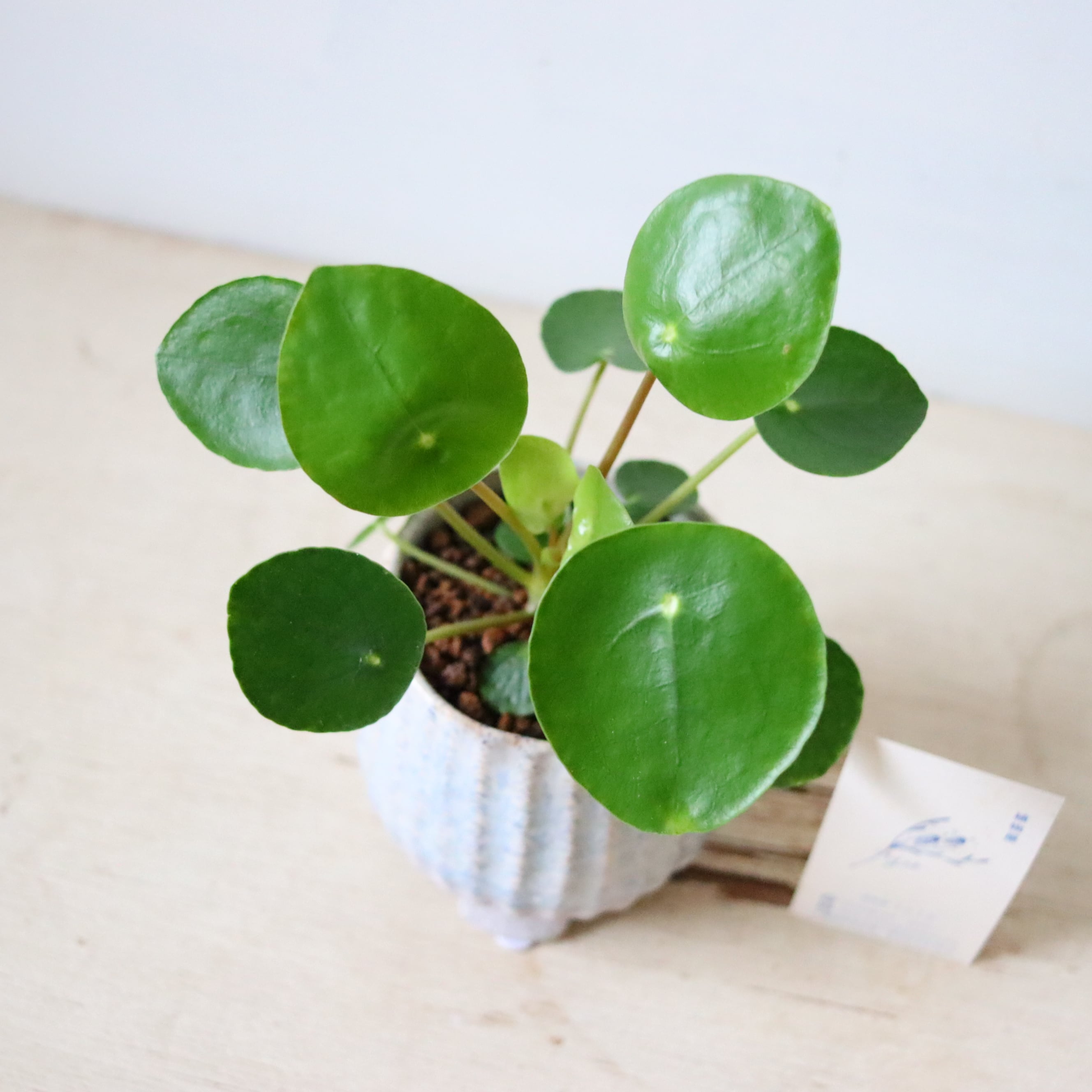 不思議なまんまるな葉っぱです。かわいい。放射状に立体的に成長する姿も面白く、人気の植物です。