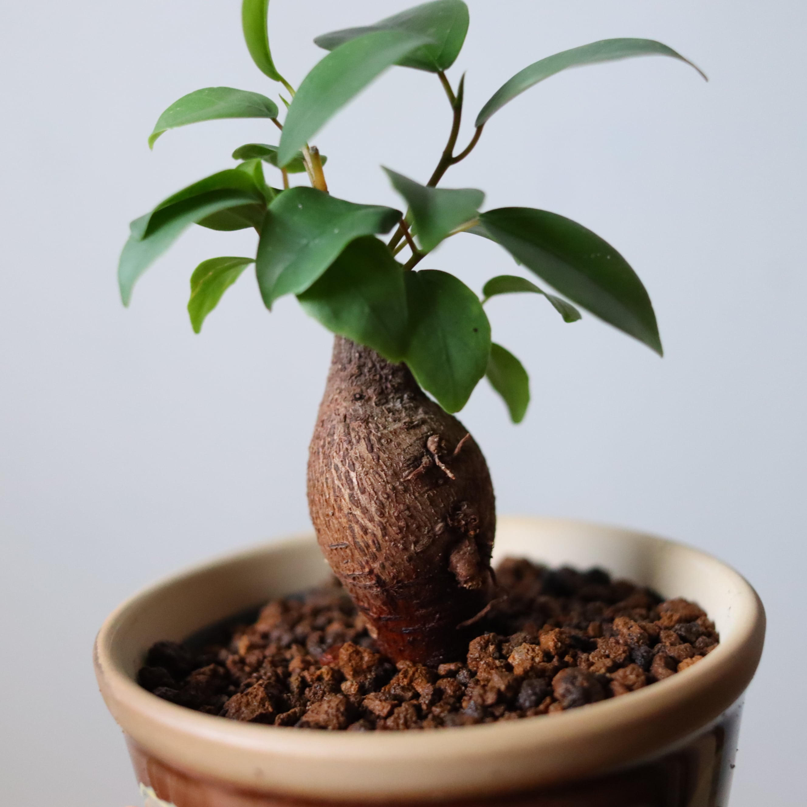 足元のかわいいガジュマルです。ガジュマルはすごく丈夫で育てやすく、お世話が苦手な方にもおすすめです。