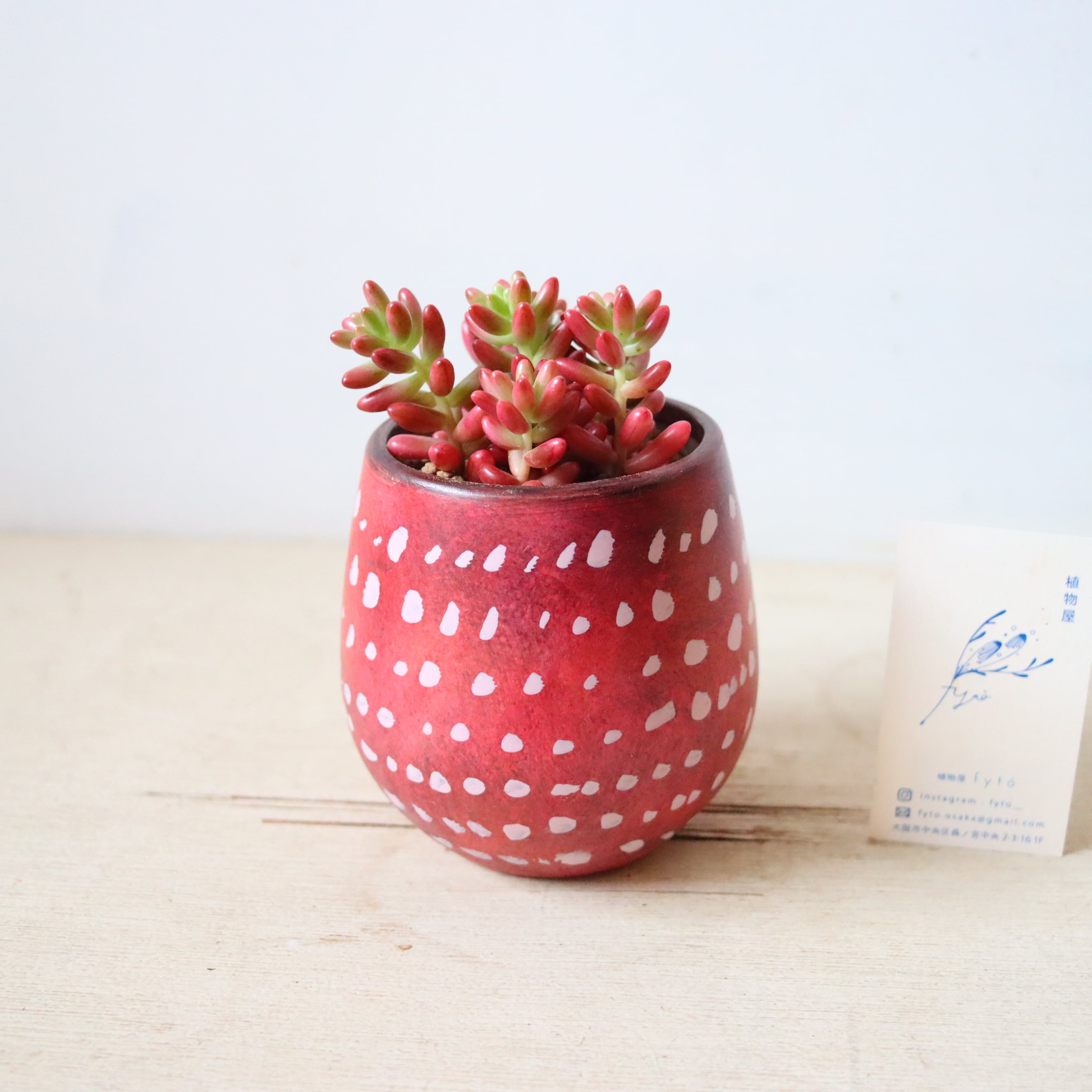 ぷりっぷりの多肉植物です。虹の玉の斑入り品種で、虹の玉よりもやわらかいピンク色をしています。ベリーっぽくて可愛い。暖かい季節は緑ですが、寒くなってくると紅葉してピンクになります。