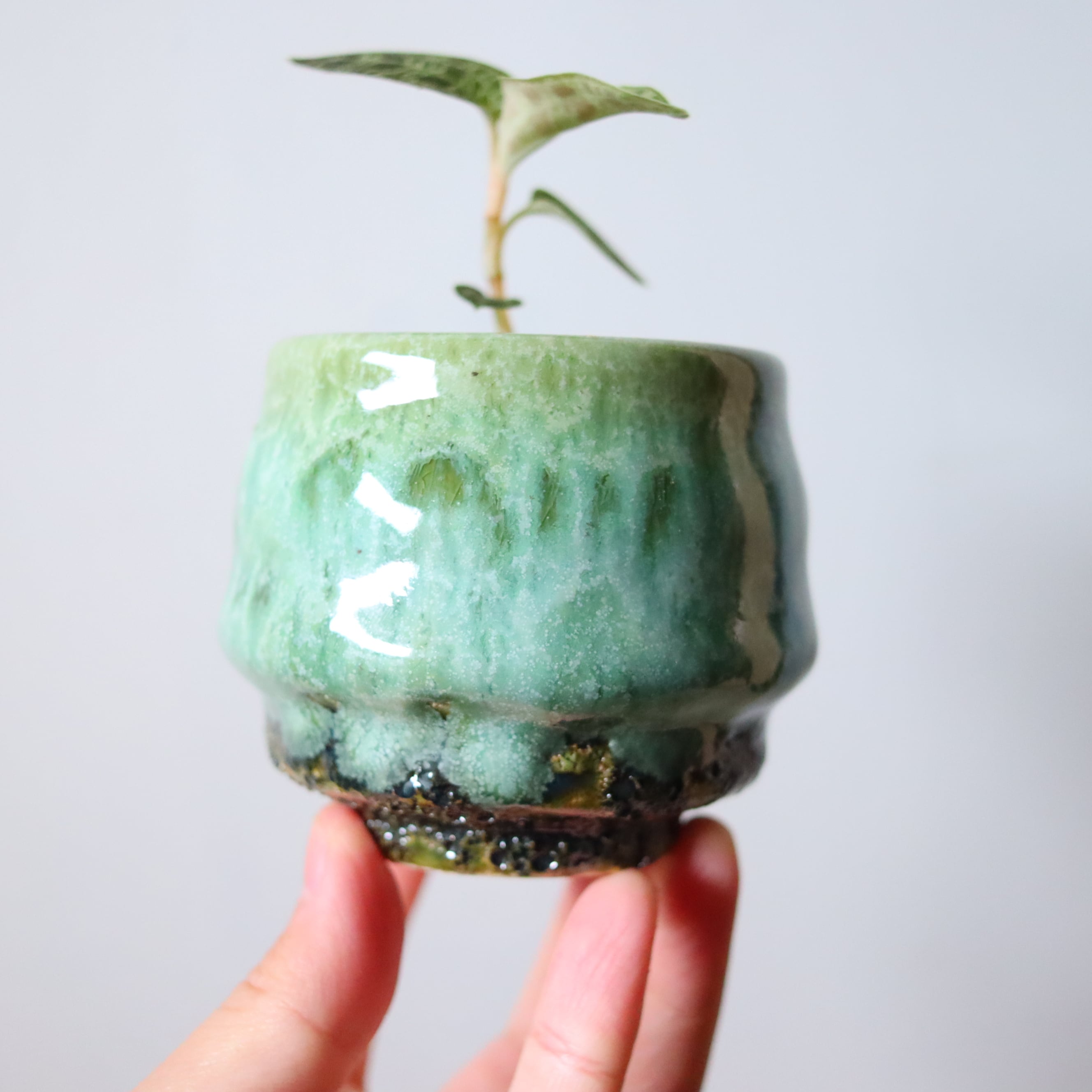 サイズ : 縦8㎝ × 横9㎝ (鉢の大きさです。名刺サイズのカードとの比較を参考にしてください。)