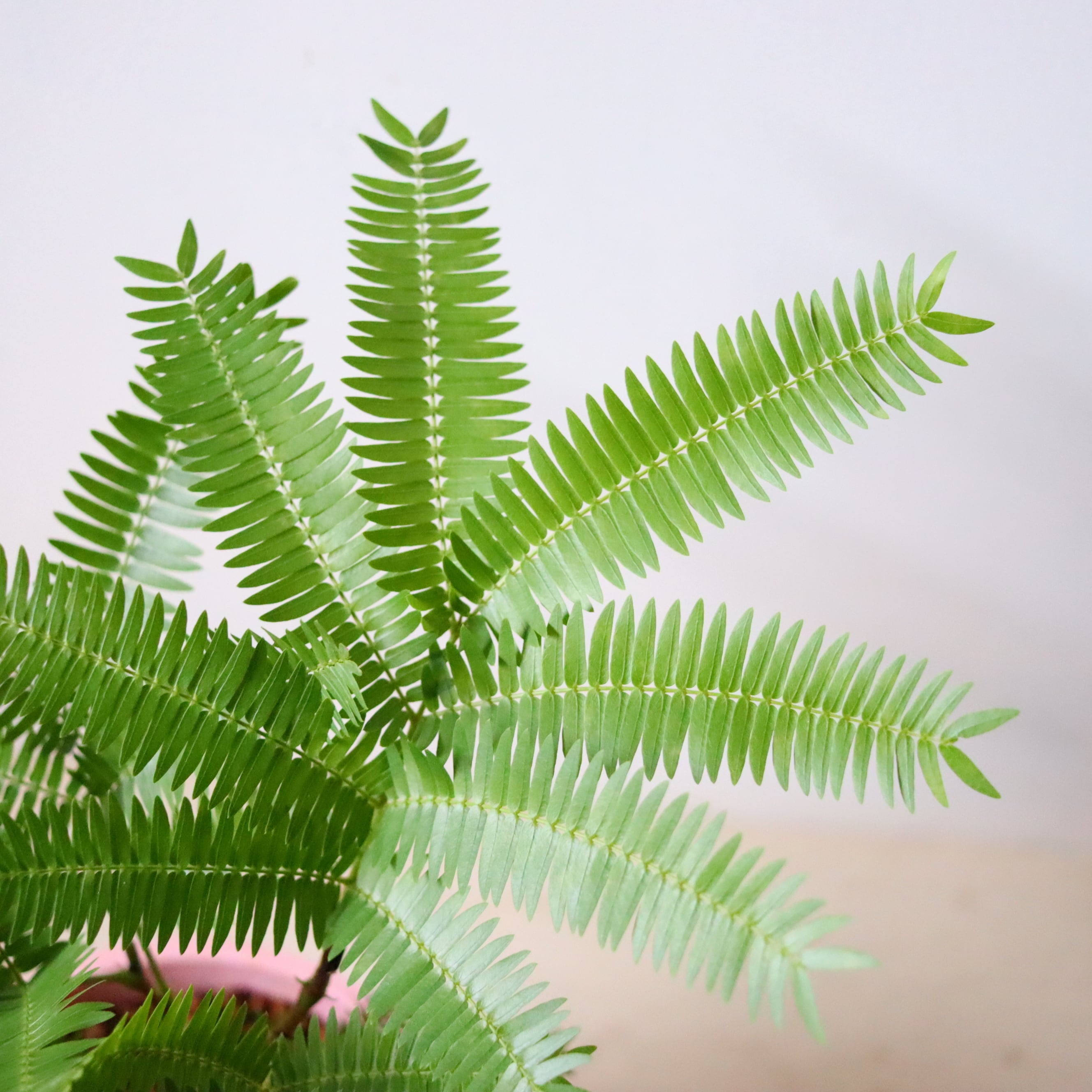 爽やかな葉っぱが魅力的な植物です。朝から夕方まで葉っぱは開いていますが、夜になると閉じるという面白い子です。枝ぶりも綺麗で、お部屋の雰囲気をがらりと変えてくれる、おすすめの植物です。